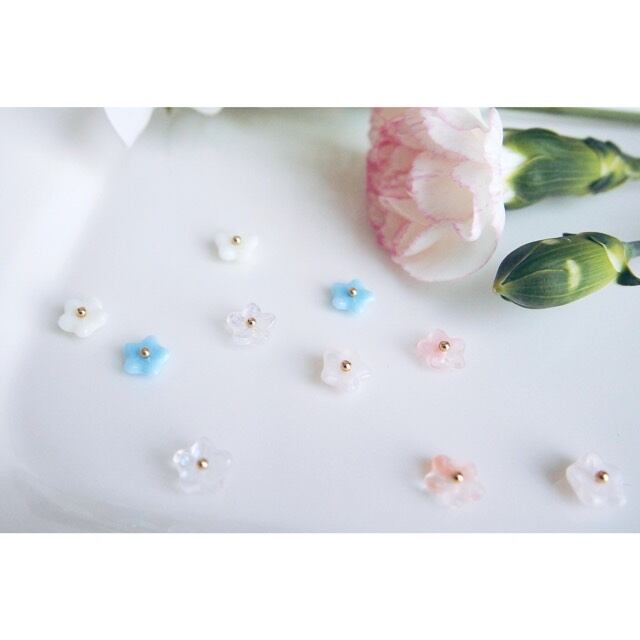 ガラス製のシンプルなフラワーピアス/イヤリングです。